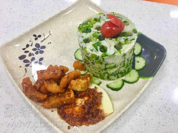 重慶一高校食堂再出神作,這次食堂師傅們用模具把米飯制作成了蜂窩煤的模樣,加上米飯采用的是紫米,蒸熟后的模樣簡直與真的蜂窩煤一模一樣!搭配一葷一素的配菜,這樣一套營養(yǎng)豐富、外觀搶眼的“蜂窩煤”套餐售價11元,自上周在學(xué)校推出以來很快就受到了同學(xué)們的追捧。