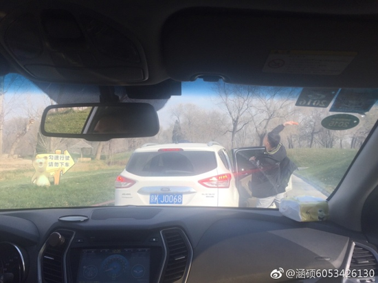據(jù)拍照片的游客稱,其在北京大興野生動(dòng)物園自駕游時(shí),看到照片中的男子在黑熊區(qū)、棕熊區(qū)兩次下車拿東西扔向熊。