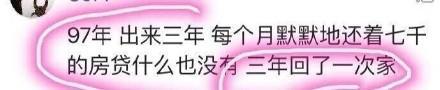 97年,出來三年,每個月7000房貸之后什么也沒有,3年只回了一次家。