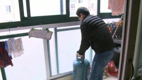為安全起見,工作人員隨即將煤氣罐搬到了陽臺上。