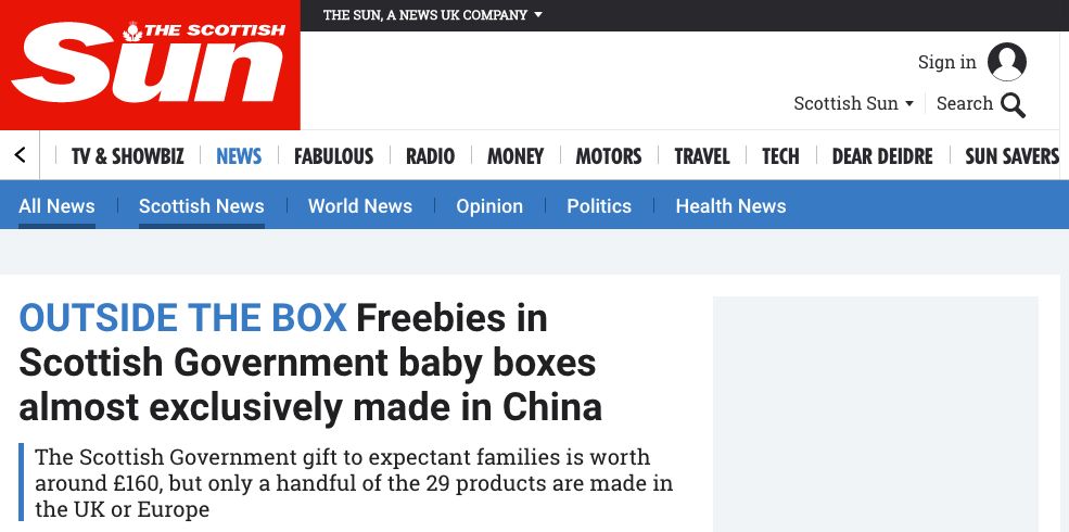 現(xiàn)在看來這個(gè)想法要被改變了!連英國蘇格蘭政府贈(zèng)予新生兒家庭的禮物,大部分都來自中國制造。