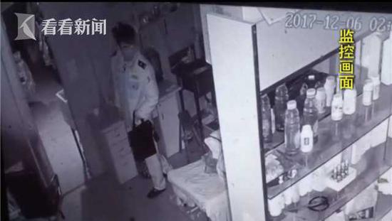 這是2017年12月6號(hào),這家煙酒店里的監(jiān)控視頻,這名身著警服的男子在店里四處轉(zhuǎn)悠,事后店主發(fā)現(xiàn)錢(qián)少了。