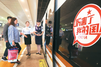 “厲害了,我的國!”在以350公里時速行進(jìn)的“復(fù)興號”列車上,這6個紅色的大字格外醒目。