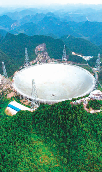 被譽為“天眼”的國家重大科技基礎(chǔ)設(shè)施500米口徑球面射電望遠(yuǎn)鏡,于2016年9月25日落成啟用。新華社記者 劉 續(xù)攝