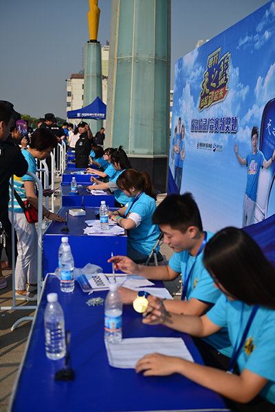 王家衛(wèi)在一部電影中寫到:“跑步這么私人的事情,怎么可以隨便跑給人家看?”但事實(shí)上,跑步這么時(shí)尚的運(yùn)動(dòng),一定要大家一起跑才happy!更何況咱們都市頻道的三位當(dāng)家花旦,還要領(lǐng)跑呢!這不,開跑前一天,我們的工作人員正在搭建舞臺(tái),一張擺在角落的報(bào)名臺(tái)前,就圍滿了報(bào)名的人!工作人員不得不臨時(shí)開始登記,直到天色漸暗,人群才逐漸散去!