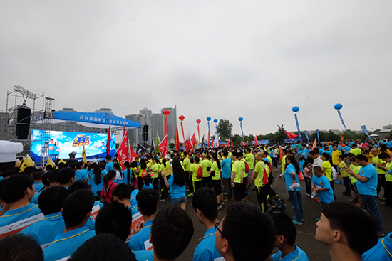 經(jīng)過了半夜的狂風暴雨后,早上8點,鄭東新區(qū)的空氣格外清新!雖然活動9點開始,但此時,cbd文化廣場已經(jīng)聚集了好幾千名參與者,他們有的是熱衷于環(huán)保的市民,有的是健身、跑步的愛好者,也有的學校、單位集體組織了方陣,提前趕到現(xiàn)場參加活動。