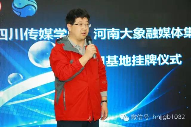 四川傳媒學(xué)院副院長(zhǎng)王雷、河南大象融媒體集團(tuán)副總裁李強(qiáng)為“四川傳媒學(xué)院·大象融媒就業(yè)實(shí)習(xí)基地”掛牌。