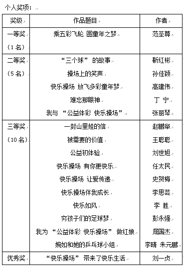 “快樂操場” 征文獲獎(jiǎng)名單出爐