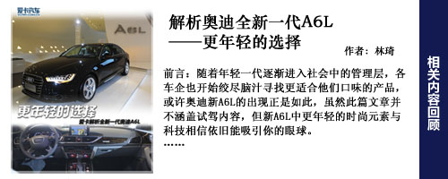 編輯點(diǎn)評(píng):新一代奧迪A6L外觀更加年輕,目標(biāo)用戶群會(huì)進(jìn)一步下探,而A6L更大的改變?cè)谂c內(nèi)飾上,更寬敞的空間,更豪華的內(nèi)飾,更加具有科技含量的電子配置。動(dòng)力總成和四驅(qū)系統(tǒng)上變化較少,好在奧迪A6L的用戶群對(duì)此并不十分關(guān)心。頂著“第一官車(chē)”的光環(huán),有政府采購(gòu)做保障,奧迪A6L并不愁銷(xiāo)路,不過(guò)奧迪希望能逐步降低對(duì)公務(wù)市場(chǎng)的依賴,以降低采購(gòu)政策改變所帶來(lái)的風(fēng)險(xiǎn)。