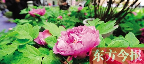 洛陽(yáng)萬(wàn)盆牡丹綻放青島 “青島紅”回家省親受追捧