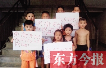 昨晚,已經(jīng)返回當?shù)氐内w會勇傳來圖片,畫面上,幾個孩子舉起寫著“感謝東方今報的叔叔阿姨”的紙片。字寫得歪歪扭扭,但,看到的人都覺得很溫暖。DF