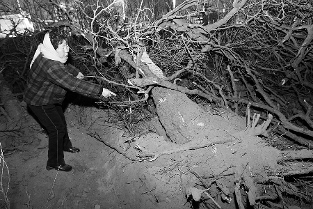 被毀的棗樹(shù)林位于新鄭市好想你棗業(yè)公司對(duì)面的新港大道路東。昨晚,記者趕到現(xiàn)場(chǎng),看到公路旁的楊樹(shù)已經(jīng)東倒西歪,穿過(guò)楊樹(shù)林走不遠(yuǎn),便是被毀的棗樹(shù)林。有的棗樹(shù)齊根折斷,有的被連根拔起,地上留下大大小小的土坑,一片狼藉。