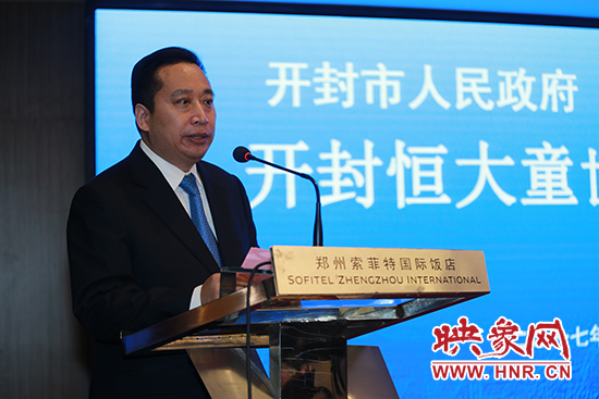開封市委書記吉炳偉在致辭中稱,在文化產(chǎn)業(yè)方面,開封在全國率先提出了“文化+”理念,制定并實(shí)施了“文化+旅游”、“文化+城建”、“文化+會(huì)展”等10個(gè)專項(xiàng)行動(dòng)計(jì)劃,推進(jìn)完成了開封鼓樓、開封西湖、“一河兩街三秀”、“一節(jié)一會(huì)一論壇一賽事”等一批“文化+”重點(diǎn)產(chǎn)業(yè)項(xiàng)目,通過新的聯(lián)接、新的重組、新的融合,激活開封沉睡的文化基因,讓開封得天獨(dú)厚的文化資源轉(zhuǎn)化成項(xiàng)目、轉(zhuǎn)化成產(chǎn)業(yè)、轉(zhuǎn)化成促進(jìn)經(jīng)濟(jì)社會(huì)發(fā)展的新動(dòng)力?!伴_封恒大童世界項(xiàng)目建成后,將成為集文化旅游、文化創(chuàng)意、生態(tài)休閑、商業(yè)服務(wù)為一體的大型綜合體項(xiàng)目,每年將帶動(dòng)周邊旅游人數(shù)增長1500萬人次?!奔シQ,這將是開封自建國以來最大的文化項(xiàng)目,是推進(jìn)鄭汴一體化深度發(fā)展的重大項(xiàng)目,同時(shí)也是河南省加快構(gòu)筑文化高地、開封加快構(gòu)筑文化高地示范區(qū)的重大項(xiàng)目,更是全面提速開封經(jīng)濟(jì)社會(huì)發(fā)展的重大項(xiàng)目,未來發(fā)展前景不可限量,必將為河南省乃至國家中部地區(qū)的文化旅游產(chǎn)業(yè)增添新的動(dòng)力和活力。