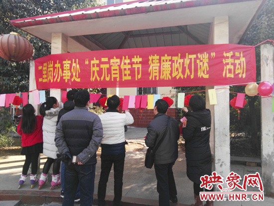活動現(xiàn)場各式彩燈和燈謎營造了濃厚的節(jié)日氣氛,大家早早就到了現(xiàn)場,一個一個饒有興趣地查看燈謎,三三兩兩地討論謎底。50條廉政燈謎內(nèi)容豐富,風(fēng)趣貼切,以黨紀、法規(guī)和黨風(fēng)廉政建設(shè)等有關(guān)知識為內(nèi)容,將廉政文化融入了傳統(tǒng)節(jié)日慶?;顒?在寓教于樂中受到警示教育。