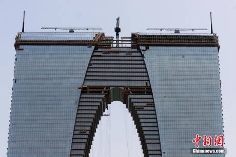 9月2日,位于江蘇蘇州工業(yè)園區(qū)的東方之門幕墻安裝進(jìn)入收尾階段,頂部幕墻正在施工中,幕墻穹頂即將封閉。