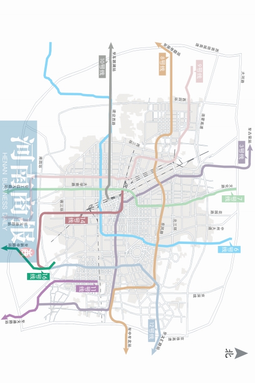 3號線走向為西北、東南,聯(lián)系惠濟區(qū)、城北片區(qū)、老城區(qū)、鄭東新區(qū)和經(jīng)開區(qū)。