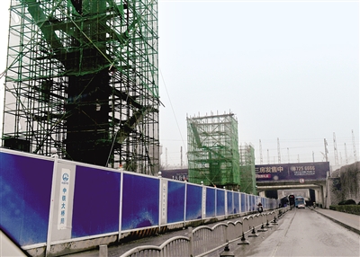 農業(yè)路跨鐵路橋西側橋墩已經開始矗立