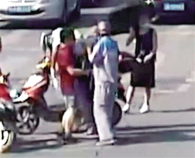 騎電動車經過的兩名男子見狀,立刻上前將王宏釗攙扶起來,緊接著又有幾位市民趕到。一名穿著紅色上衣的男子將王宏釗扛在肩頭,一位女士給王宏釗打傘遮陽,眾人一起把王宏釗轉移到路邊。聞訊趕來的其他交警在這個路口補位,繼續(xù)指揮交通。