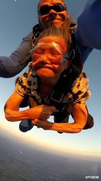 17、中國(guó)81歲老太澳洲玩高空跳傘