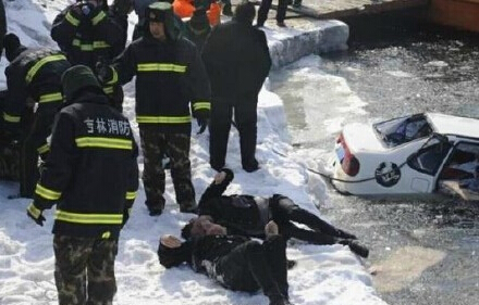 13、轎車疑因下雪滑入松花江 車內情侶相擁身亡
