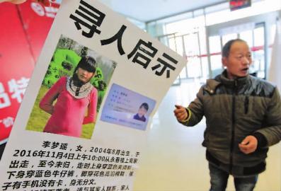 李先生說,女兒叫李夢瑤,出走時上身穿藍(lán)色夾克衫,下身穿藍(lán)色牛仔褲,腳上穿的是雙花色高沿棉鞋。