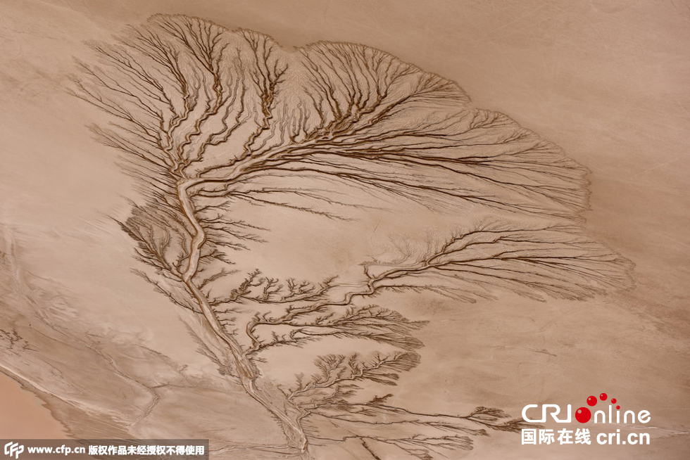 2015年6月5日消息,美國(guó)加州莫哈韋沙漠,這些照片看起來(lái)像是拍了森林中的一排樹(shù),但事實(shí)上它們是干涸湖底的紋路。這種紋路足足綿延3英里。飛行教員Jassen Todorov在3000英尺的空中拍下了這組照片。圖片來(lái)源:CFP