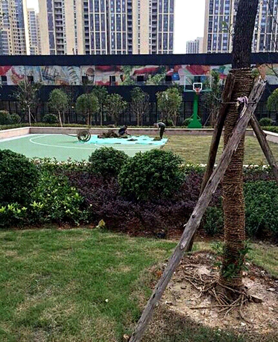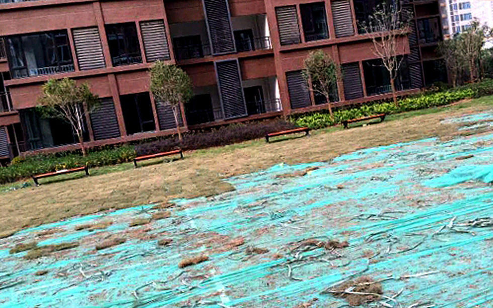 業(yè)主們在小區(qū)發(fā)現(xiàn)有幾名工人正在建設好的球場和附近的磚道上鋪就草皮,放眼望去,小區(qū)一片碧綠,此舉被業(yè)主質(zhì)疑為驗收湊數(shù)。