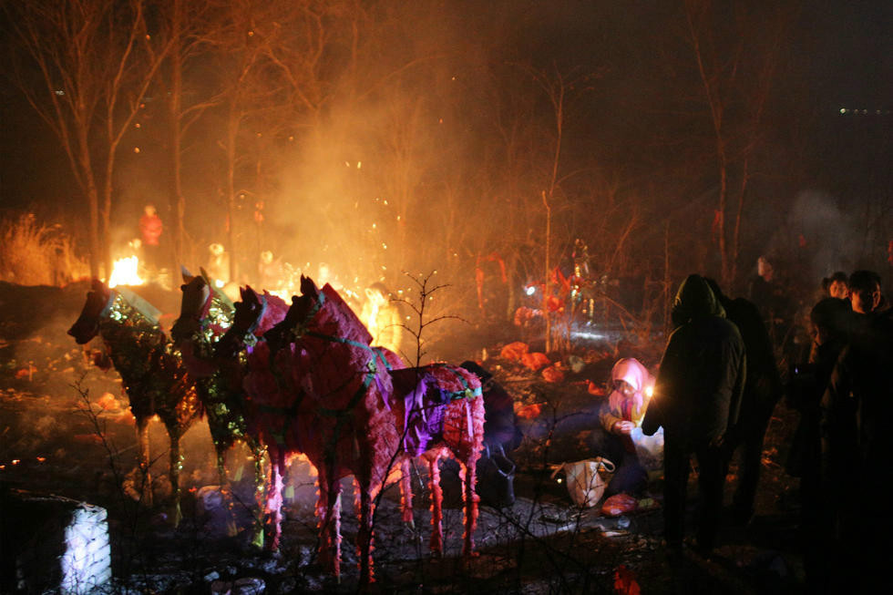 2016年2月23日凌晨,山東省濱州市惠民縣小霹靂莊,宋代古冢牛保冢上一年一度的正月十六祭祀活動(dòng)正式開(kāi)始,方圓百里萬(wàn)余百姓陸陸續(xù)續(xù)趕來(lái)祭祀,以求風(fēng)調(diào)雨順,家和事興。多種祭祀用紙馬先后被抬上祭壇引燃,化作火龍直沖云天,數(shù)量足有數(shù)千匹之多,場(chǎng)面壯觀且奇異,親臨現(xiàn)場(chǎng)宛若置身神鬼大片,令人印象深刻。