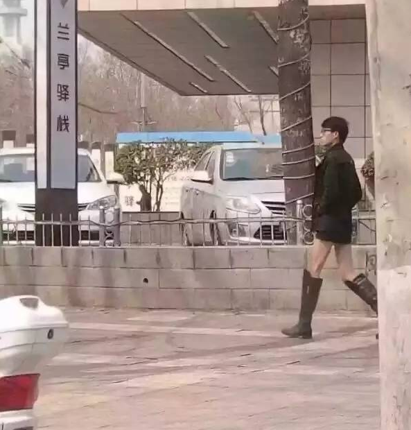 網(wǎng)友對此評論:春天來了,焦作礦山崗樓蘭亭驛站門口,某位大哥已經(jīng)迫不及待換上了春裝。