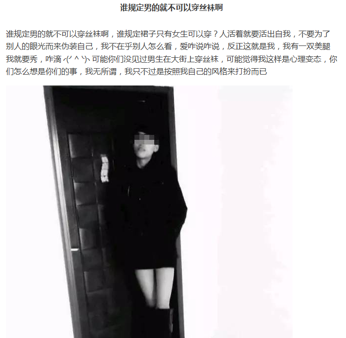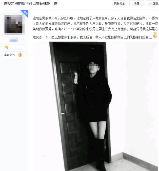 好吧,小編還是第一次見到這位網(wǎng)紅,難免心情有些小激動。畢竟每個人都有一顆愛美的心和追求美的權利。只是這位小伙很“勇敢”的表達出了自己內最深處的想法和最真實真是的自我。對此,小編只想說:請收下我的膝蓋!實在是佩服佩服!最后,也祝愿這位小伙早日找到能夠陪伴自己相愛一生的伴侶。