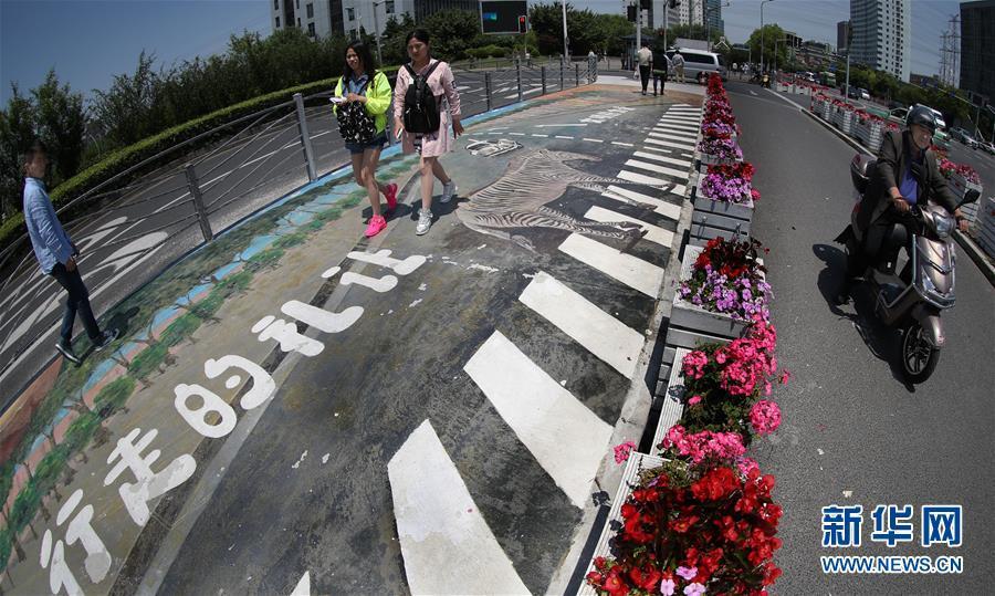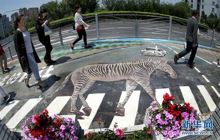 5月16日,行人從上海漕河涇開發(fā)區(qū)一處3D斑馬線上走過(guò)。近日,上海漕河涇開發(fā)區(qū)的一條人行橫道線變身一幅3D效果圖畫,還“植入”了宣傳行走禮讓的標(biāo)語(yǔ),呼吁文明出行。 新華社記者 凡軍 攝 圖片來(lái)源:新華網(wǎng)