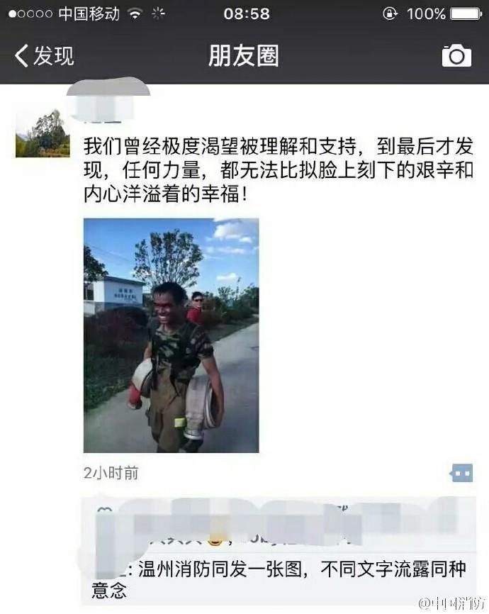 這是溫州龍港消防戰(zhàn)士成功處置6起火災(zāi)凱旋后,被抓拍到的一張照片,照片中樸實(shí)的笑容,最美的笑容,也是最美的瞬間。