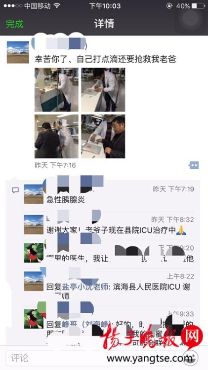 記者聯(lián)系上微信好友劉海峰,他告訴記者,昨天晚7點左右,他老爸重因病去濱??h人民醫(yī)院搶救,進入重癥病房后,跟著一名護士去喊醫(yī)生,看到一名男醫(yī)生坐在辦公室的看病歷。“我簡單說了一下爸爸的病情,他立刻推著掛著點滴的架子跑了出來?!眻D片來源:揚子晚報網(wǎng)