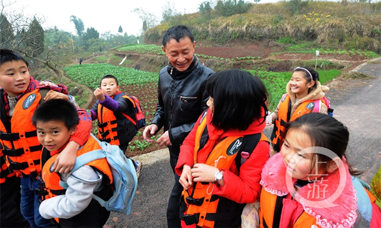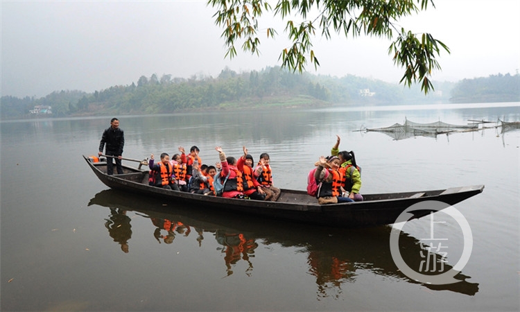 每當(dāng)上學(xué)放學(xué)的時(shí)候,在大足區(qū)響水灘水庫(kù),平靜的水面上,總能看見(jiàn)一條小小的木船來(lái)回穿梭。上學(xué)時(shí),撐船的人把岸邊的孩子一個(gè)一個(gè)牽上小船;放學(xué)時(shí),撐船的人把船上的孩子一個(gè)一個(gè)牽下小船。