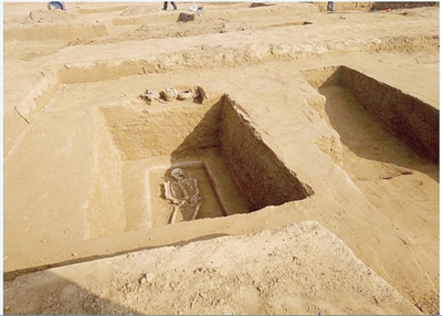 昨日上午,記者現(xiàn)場(chǎng)看到,大量考古人員正在大面積的考古發(fā)掘。據(jù)現(xiàn)場(chǎng)一位考古技術(shù)員介紹,這是繼去年常莊村發(fā)現(xiàn)古墓群后,又一古墓群的發(fā)掘,共有73座古墓,里邊已經(jīng)有少量隨葬品出土,初步斷定為東周至漢代時(shí)期古墓群。