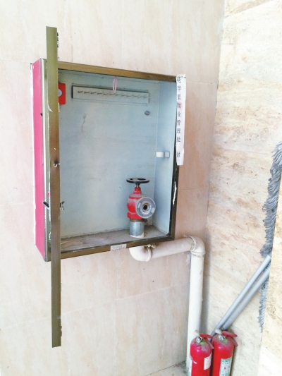 鄭州金印陽(yáng)光城小區(qū)里,一個(gè)消火栓箱里空空如也,銹跡斑斑。