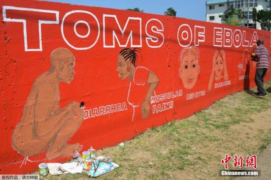 當(dāng)?shù)貢r(shí)間9月8日,在利比里亞,蒙羅維亞街頭,一名叫斯蒂芬·多伊的藝術(shù)家在墻上創(chuàng)作壁畫(huà)向人們介紹致命的埃博拉病毒病發(fā)癥狀。世界衛(wèi)生組織8日發(fā)出警告,利比里亞已經(jīng)成為西非受埃博拉疫情肆虐最嚴(yán)重的國(guó)家,該國(guó)因疫情死亡的人數(shù)已經(jīng)占整個(gè)西非發(fā)病死亡人數(shù)的一半以上。