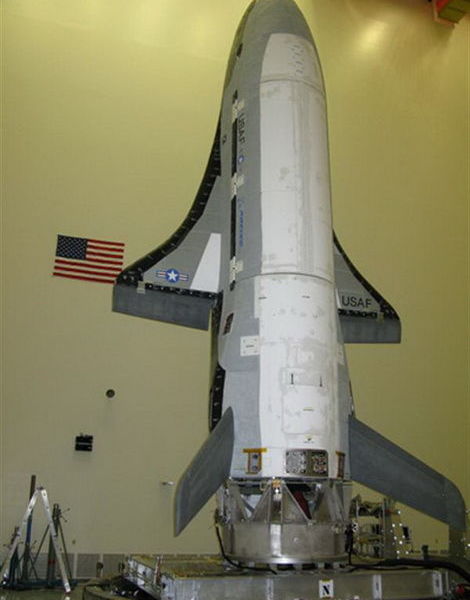X-37B無人航天飛機。X-37B長約8.8米,翼展約4.6米,起飛重量超過5噸。飛機減速離開太空,可能使用范登堡空軍基地長4600米、寬61米的跑道著陸。在軌道上,此航天飛機可以從事情報收集、發(fā)射小衛(wèi)星、測試太空設備等工作。