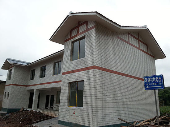 沿一條水泥公路進入馬湖村,一棟標識為“馬湖村村委會”字樣的兩層樓房出現眼前。樓房剛修建不久,外貼白色瓷磚,看上去如一棟小洋樓,門口院壩里泥土還未干,十分泥濘。察看辦公室,未見村干部辦公。