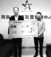 河南省體育彩票管理中心主任孫和平為大獎(jiǎng)得主頒獎(jiǎng)