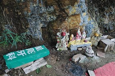 從山腳到山頂,“奶奶”分布在十余個地方,有的“奶奶”神像棲身于殿廟內(nèi),有的“奶奶”神像安置在藍色彩鋼搭建的簡易棚子中,有的“奶奶”神像則是露天擺放。