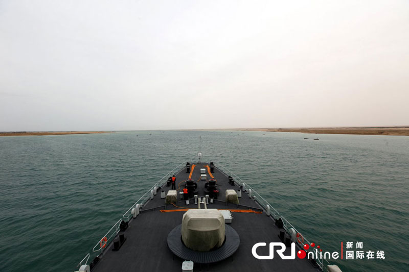 國際在線報道(記者王智達(dá)、曹金平):當(dāng)?shù)貢r間27日清晨6時(北京時間中午12時),執(zhí)行“和諧使命——鄭和艦環(huán)球行”任務(wù)的中國海軍遠(yuǎn)洋航海訓(xùn)練艦“鄭和”艦,在埃方引水員引導(dǎo)下,緩緩駛?cè)胧澜缏劽奶K伊士運(yùn)河。圖為鄭和艦駛?cè)胩K伊士運(yùn)河 王智達(dá)攝
