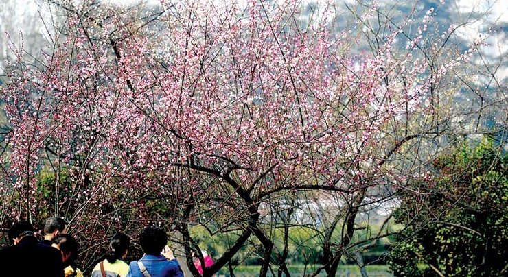 昨日,碧沙崗公園,紅梅盛開,游人爭相合影。 記者 張翼飛 圖