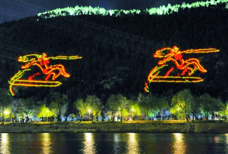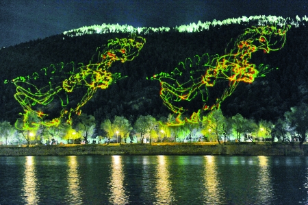 激光照射龍門山,迷離變幻現(xiàn)代感。