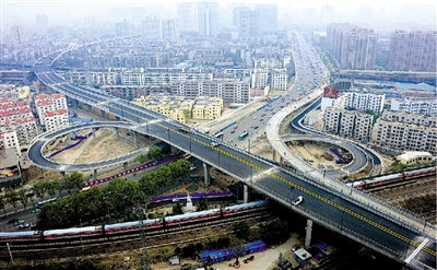 京沙快速通道金水路段立交橋景觀。