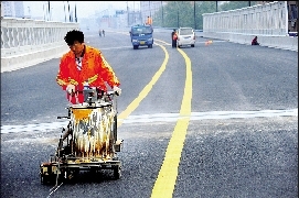 一些路段正在進(jìn)行道路標(biāo)線施工和照明安裝,市燈飾照明處工作人員告訴記者:“正在安裝的是400W的高壓鈉燈?!?/p>