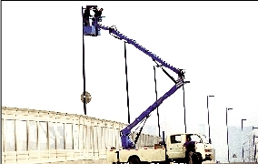 橋上正在安裝照明設(shè)施。