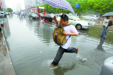 昨天下午3時,記者在東風路與文化路交叉口的地下隧道內看到,有轎車已被水淹滅了,難以動彈,地下隧道中的積水可沒過輪胎。金水路與東明路交叉口西約100米路南,積水嚴重,水深幾乎沒過轎車輪胎。豐慶路與三全路交叉口附近的豐慶路小學門前也是宛如“海洋”,積水沒過自行車大半個車輪。放學的部分小學生無法通行,被人背著過路。巡防隊員解釋稱,此處地勢低洼,排水不暢,逢雨必淹,孩子們雨天上下學很不安全。
