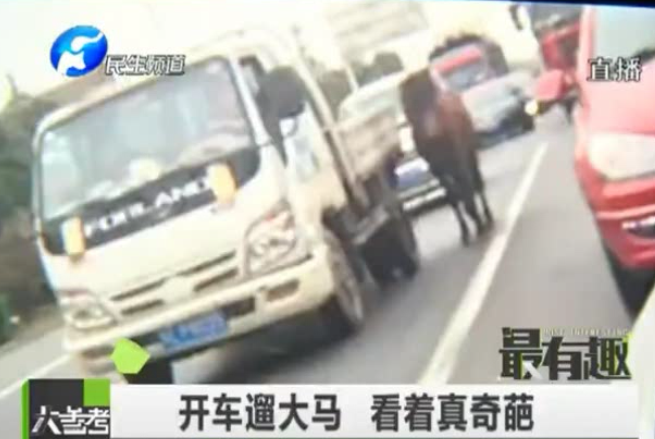 奇葩司機(jī)馬路上開車遛馬