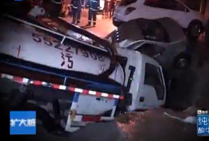 • 鄭州道路再塌陷 同時吞倆車